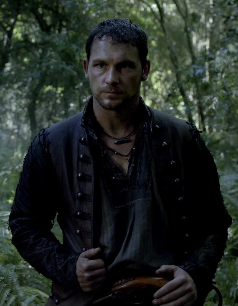 Adams is aboard the Walrus when it meets the Eurydice after Kofi's mission fails. As Woodes Rogers executes the men from the recon mission, Flint orders the crew to ready the guns but Silver tells the crew to belay that order. Silver then orders Adams and Joji to retrieve the cache of gems from the hold. Adams and Joji then hoist the chest up and open it so Rogers can see that they have the gems. After Rogers is signalled, he uses a spyglass and sees the gems. Rogers then leads them to Skeleton Island. After Flint absconds with the cache, Adams is sent by Long John Silver along with Israel Hands , Joji, Colin and two other pirates to pursue Captain Flint and Dooley, retrieve the Urca cache of gems and kill the former. These men are considered by Silver to be the six best men he has left.