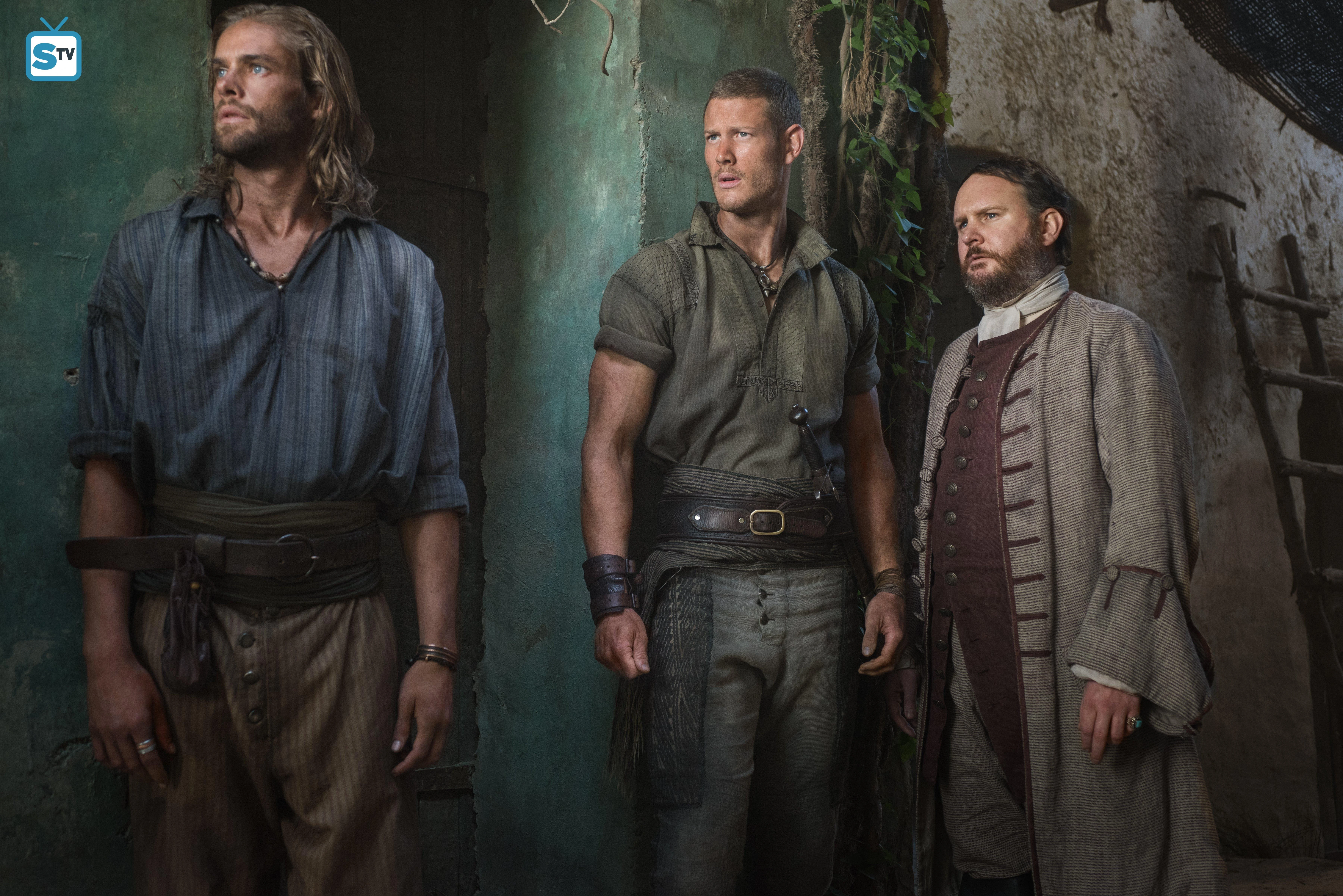 With the pirates on the beach having surrendered, Rackham, Vane, Bonny and their crew are stuck in the fort with men slowly gathering for the bounty on Vane. Featherstone informs the three that the crew have voted to give up Vane, believing that turning over Vane will allow them to keep the fort and the gold. Rackham is force to acknowledge that the defense of Nassau is over and comes up with a new plan; to destroy a portion of the fort so Vane can escape with Blackbeard’s fleet while he and Anne flee with their cache of gems. After they destroy the fort wall, Vane, Rackham and Bonny all flee, while Featherstone and the remaining crew surrender[10]