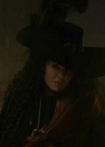 Not long after John Silver arrives to Nassau, he is approached by members of the crew, one of them saying that he should not have to be involved as he is only a cook. The other states that it's not up to them, and that "he only meets the new ones". When John inquires as to whom they are referring, they tell him it is "Blackbeard". When they arrive to the room at the Inn, one of the men advises him to not show fear; they push him inside and in front of a clothed figure surrounded by several women. John then notices Blackbeard's face and see's that it is a woman, and not the famous Blackbeard himself. When he discovers, and points out that she is not Blackbeard, she stands up and drops her clothes, showing John why she earned her name (Because of her beard like black pubic hair). Silver's crew laughs as they close the door and leave him with "Blackbeard" and the other women.