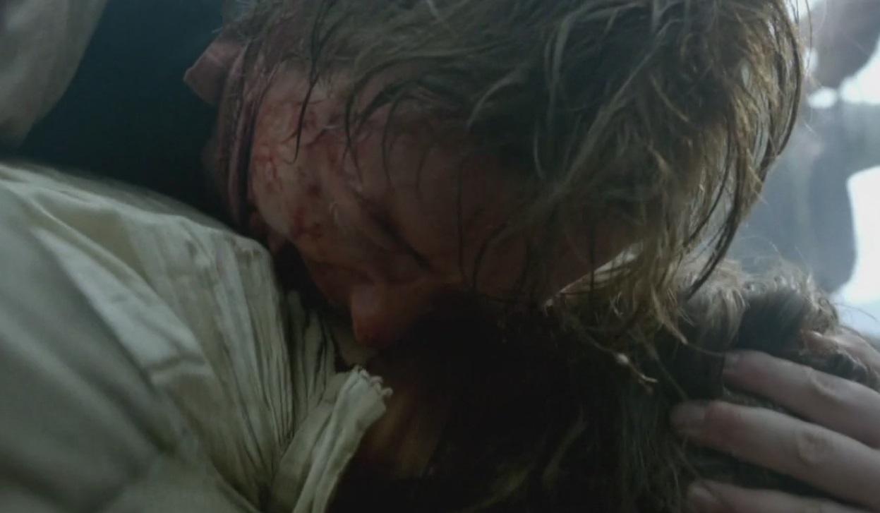 After a lengthy standoff with Bryson's remaining men, who had retreated into a bunker, the pirates are able to finish them off with the help of the slaves locked in the hold underneath the bunker. While they transfer the guns, Dufresne chats with Billy before Gates summons him. Afterwards, the pirates are forced to flee when two men accidentally trigger an explosion, giving away their position to the nearby HMS Scarborough. While they flee, they are dragged down by debris from the Andromache that got tangled with their bow. Billy and Flint rush to try and cut it away, but Billy falls overboard after the Walrus is hit by several shots from the Navy warship. Dufresne joins Flint, Logan and Gates in rushing to the stern to find Billy, but he is nowhere to be seen, and the ship cannot turn around to get him without being destroyed by the Scarborough. Afterwards, the crew has a funeral for their fallen brethren. Dufresne reads aloud the names of Old Jim Carver and Sebastian Frakes as they are given a burial at sea. When Dufresne gets to Billy, Flint drops Billy's cutlass overboard in lieu of the missing body[5].
