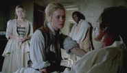 Eleanor stoically enters Vane cell. She accuses Vane of taking her father away from her just as they were reconciling their differences. Vane immediately calls her out on her fantasy, reminding her that her father ultimately betrayed her, and accuses her of siding with any man who would satisfy her ambitions. Inflamed, Eleanor bloodies her knuckles on Vane. Meanwhile, Rogers has been confined to bed with a fever, leaving Eleanor in charge until he recovers.