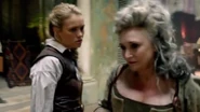 Captain Flint eventually returns to Nassau, furious to find Vane now commanding the fortress. He demands that Eleanor do something about Vane before he attempts to bring the Urca gold back. Eleanor tries to be a mediator between Flint and Vane, but as tensions rise, she asks Mrs. Barlow for help to soften Flint’s stance. Mrs. Barlow comes to Nassau, but during their conversation Vane attacks him, having sneaked out of the fortress. Eleanor breaks up the fight with a musket, and forces the two to negotiate. Flint offers to stand his men down from attacking the fortress, if Vane will give Abigail to him. Vane demands the Spanish Man O’ War in return, but Flint balks at the demand. Afterwards, Eleanor assures Flint that Vane will agree to the original terms.