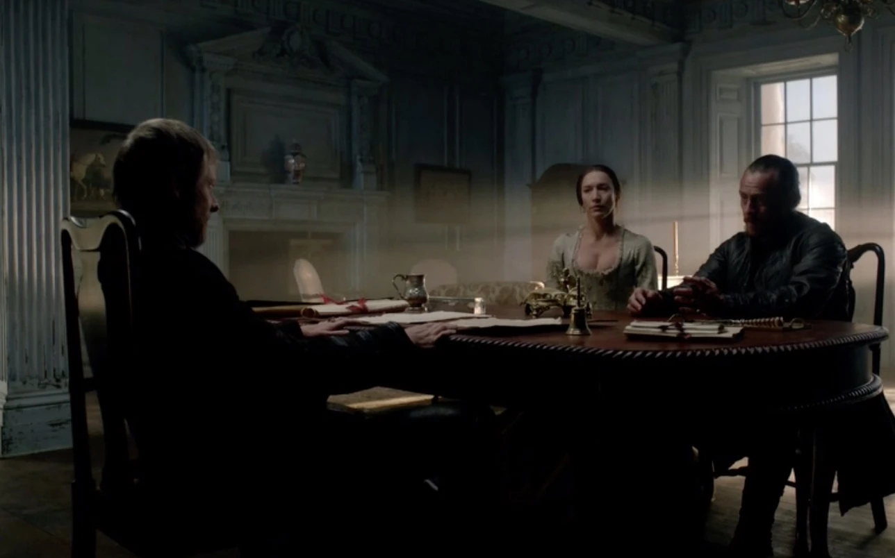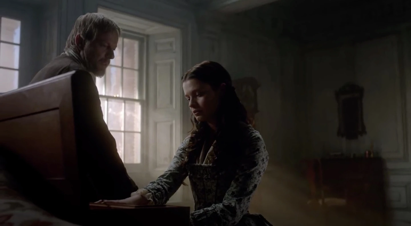 Ashe says that the first thing the men he knows in Whitehall will ask for is a name for who will be the new Governor of New Providence Island. Ashe asks if Flint wants the role, and Flint declines, although he says there are things he can do to help protect the colony. His true desire is to retire to the interior with Mrs. Barlow. Abigail then informs her father that Mrs. Tyler says it’s time to turn the room over for dinner. Ashe tells his daughter to ask for Mrs. Tyler to arrange a room for Flint and Miranda in the meantime. As they leave, Miranda notices a clock and seems bothered by it. When Flint asks if there is something wrong, Miranda brushes it off as nerves.