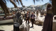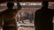 Leaving the tavern, Gates goes and talks to Mosiah, who is the de facto leader of the African members of the Walrus crew. If Gates can get Mosiah and the other Africans' support, Singleton will be one vote short. Mosiah agrees to put his support behind Flint. As Gates is leaving his conversation with Mosiah, he is spotted by Rackham, the quartermaster of Captain Charles Vane's ship the Ranger. Quickly understanding what he has just seen, Rackham goes and tells Singleton. Singleton sets up a meeting on the beach with Mosiah, who brings another African member of the Walrus's crew named Levi as protection. When questioned by Singleton, Mosiah admits that he is backing Flint in the upcoming election. When Mosiah and Levi turn to leave, they are confronted by Rackham, Anne Bonny, and their Charles Vane. Levi attempts to attack, but is quickly killed by Anne. They then kill Mosiah.