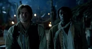 In Vane's tent, Rackham enters to find Vane visibly bruised and beaten. One week without a ship has sent Vane into a tailspin. Rackham tells Vane that he needs to get himself together because Rackham is tired of trying to recover what they have lost just by himself. Looking outside his tent, Vane sees a hulking man staring at him. The man suddenly seems to disappear.