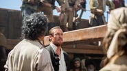 At Eleanor's tavern, the meeting between the Guthrie’s and Bryson is taking place. Bryson seems stunned that Richard would go along with a plan such as the one to capture the Urca, but Richard tells him that the only thing that matters to him is profit and that they stand to gain quite a bit. Richard then asks to speak to Bryson alone. Bryson then accuses Richard of being desperate. He surmises that with the Scarborough docked nearby and with Guthrie taking part in such a risky plan, that something must be terribly wrong. Outside the room, Mr. Scott sees several armed guards and realizes that Eleanor has lied to him about her promise to not use force against Bryson should he not comply. Bryson then emerges from the room and tells Eleanor that the guns are hers and that he will begin transporting them to shore later that evening.
