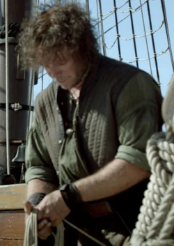 The Leadsman is a pirate serving under Captain Flint aboard the Walrus. A leadsman is a sailor who uses a sounding lead (a piece of rope with ties at measured intervals and a lead weight at the end) to measure the depth of water.