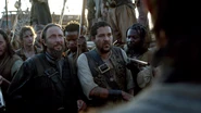 The two pirate crews then aim their weapons at each other but Jack begs them to wait. He says that he tried to negotiate a reasonable deal with Harcourt, but says that Harcourt refused to agree to any deal that did not include the slaughter of every member of the prize crew. Jack then has his crew free and arm the merchant sailors. He then asks the Goliath crew if there is anyone among them who is willing to negotiate a fairer deal with him. After some hesitation, the Goliath's Quartermaster agrees to sit down with Jack.