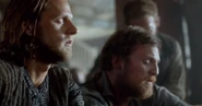 While Meeks waits, Low and Holmes come up on either side of him. Low says he was told by Holmes that Meeks was seen nervously entering Eleanor's office. Low says he is forced to wonder if Meeks was meeting with her to seek an ally in deposing Low. Meeks insists that he has a duty to the men to protect them from Low and from themselves. Low says that he does, but there is also the possibility that Meeks is just a spineless traitor. Low then beheads Meeks in the middle of Eleanor's bar.