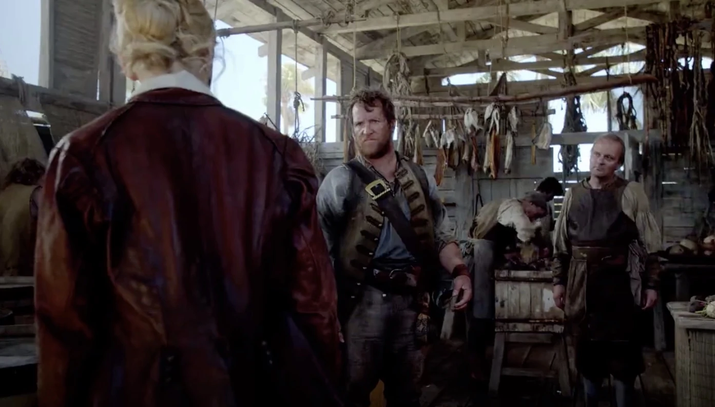 Meeks confronts Low about his encounter with Eleanor in the Tavern the previous night. Meeks tells Low that he is recklessly jeopradizing the crew's relationship with her, which is far more important than the amount of money she withheld. Low replies that he was just recounting his and Eleanor's conversation, and wondering aloud what would happen if he were to rape Eleanor, much to the mirth of the crew. Low adds that when the crew returns from Carolina, they will all be rich, and it is uncertain what will happen next. Low then tells Meeks that it is "best to live in the now."