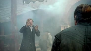 While a court official is reading the diary, Vane stands up and announces that he wishes to speak on behalf of the defendant. Kensington orders him to sit down, but Vane continues speaking. He says that men like Kensington have convinced the people of Charles Town that they speak for them, that the power they are given is used in their interests, that the prisoner before them is their enemy. Vane says that for the people who live to see tomorrow, they should know that they had a chance to see the truth but let themselves be convinced otherwise. Throughout the speech, Kensington futilely attempts to shout Vane down. He tries to order Vane removed from the dais. but Vane raises his arms, giving the signal for his men on the Battery’s walls to open fire on the square. During the chaos of the attack, Ashe tries to escape, escorted by two militiamen. Flint quickly dispatches both, and Ashe begs Flint to grant him mercy, calling him James. Flint stabs Ashe through the stomach, mortally wounding him. He then forces Ashe to look at Miranda's body, and tells him that her word is the last word for Charles Town. Ashe slowly bleeds out, dying as he watches his city be laid to waste around him[8].