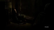 Inside the cabin, Flint and Dooley prepare to jump overboard and swim to shore with the cache. However, the Pirate was only wounded. He slowly and quietly reaches his pistol, and prepares to fire it at one of the, which would raise the alarm. Before he can do so, Israel Hands plunges his warhammer into the Pirate's head, killing him. Hands lets them leave with the chest to convince Silver that Flint is not to be trusted, but blames their death on them.