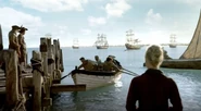 Charles Vane successfully takes over the fort with the aid of his new crew. They assault it coming from the interior, and slaughter the crew to a man. Vane then has them fire the fort's guns on the ship. This causes confusion in Nassau, as they believe that Hornigold's men are firing on their own ship. Half the foremast topples and the ship partially sinks as a result of the damage from the fort's guns. Hornigold plans on retaking the fort, and assembles 250 men to do so. However, Eleanor tells Vane about the tunnels beneath the fort that Hornigold had planned on using to launch a surprise attack[4].