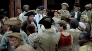 As the Crier continues to speak, he says that they have to put Flint down to teach a lesson to everyone his evil ways. He also says that if the people of Charles Town thought they knew just how evil Flint is, the Crier tells them that they will hear of schemes that are almost impossible to believe during the trial, such as employing his minions to dastardly ends. The Crier then directs the crowd’s attention to the coffin of Miranda Barlow, and says that she is a woman with whom Flint conspired to try and murder Lord Ashe in his own home in front of his daughter. The coffin’s lid is then opened, and the Crier tells the crowd to behold Flint’s minion, who tried and failed to help Flint spread his evil in Charles Town. The crowd then begins throwing rotten vegetables at her body.