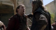 When the hangings of the pirates taken prisoner during the invasion begin, Werth stands at the gallows as three pirates are marched up to be hanged. Werth stands behind Dr. Howell, and when Berringer gives the go ahead, Werth and the other two soldiers push the pirates off the platform, causing them to suffocate and die. Berringer orders the next three be brought up, but at that moment Long John Silver and Captain Flint lead their handful of men into the square. Berringer assembles his numerically superior force, but before anything can happen the pirates are joined by the citizens of Nassau, who are fed up with Berringer’s reign of terror. The two sides exchange fire and charge at each other. As the Redcoats start getting pushed back, Berringer calls up reinforcements that he stationed on the rooftops around the square. However, they are repelled by the arrival of Billy Bones and the Pirate Resistance. Israel Hands then begins cutting his way towards Berringer. Werth rushes at Hands, who parries his sword and kills him with one strike of his warhammer and then tossing his body aside[3].