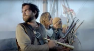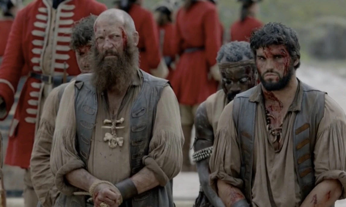 After learning of Flint’s arrest, Vane leads half his men on a mission into the city to rescue him. The remaining half under the command of Vane’s quartermaster, Jenks, who decides to try and sail away when Vane’s contingent begin their assault. Jenks tries to torture Silver for the names of more men so he can successfully sail the ship, but the Walrus crew rises up and retakes the ship, killing or subduing their captors.