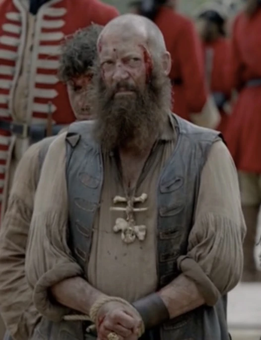 During the Battle of the Maroon Island, Williamson mans the defenses on the beach with the rest of the pirates and Maroons. Rogers’ fleet fires on them using their cannons before deploying the ground forces in longboats. The pirates and Maroons are initially able to hold them back as they exchange volleys of musket fire, but the Redcoats bring their mortars to bear on them. Soon, Flint calls for a retreat, Williamson is captured by the Redcoats, along with about a dozen other men. Dobbs approaches the British camp. Having been tasked with killing Benjamin Hornigold, who is leading the ground forces. However, he betrays the pirates, offering to lead the British forces safely through the jungle to the Maroon Camp. To prove his loyalty, he is asked to kill a Pirate Prisoner. Williamson watches as Dobbs executes his former brother in arms. Dobbs’ betrayal is revealed to have been a ruse, and when he leads Hornigold and his men to the camp, an ambush is launched and the British forces are routed. Williamson and the rest of the prisoners are freed after the British retreat.