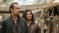 Elsewhere in Nassau, Rackham is having problems raising a crew because no one wants to be associated with a "crew killer". He then confronts Bonny about her relationship with Max. He tells Bonny that it is painfully obvious to him that Max is trying to drive a wedge between him and Bonny. Bonny says that she realizes this but that she can do nothing to stop it. When Rackham and Bonny return to their brothel, they are confronted by Vane, who asks that they sit with him. Vane states his intentions to repair their reputations. Vane then shakes Rackham's hand and gives him a hug that all can see.