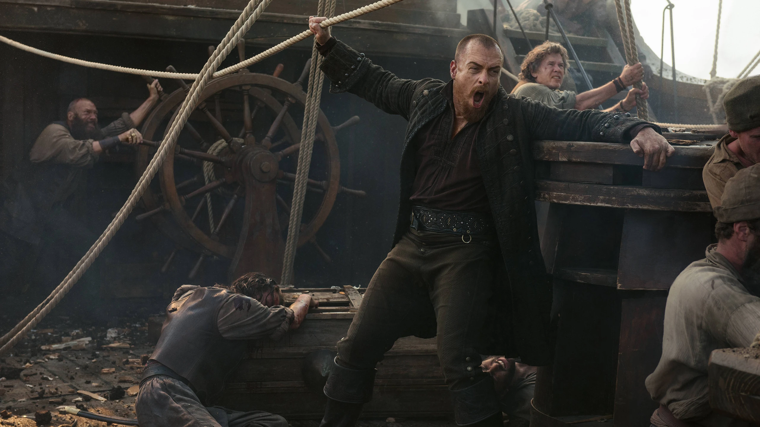 What was supposed to be an invasion of overwhelming force, only ended in disaster. Woodes Rogers continues to demonstrate that he is Flint’s intellectual equal; before the approach, he set a trap by intentionally sinking ships as a hidden blockade. Most of Flint’s fleet run aground on the underwater wrecks, within range of Nassau’s cannons. Bloody carnage quickly ensues. The only ship not caught is Blackbeard’s, with Jack Rackham and Anne Bonny on board. They make a tactical retreat to draw Woodes’ fleet away from the survivors.