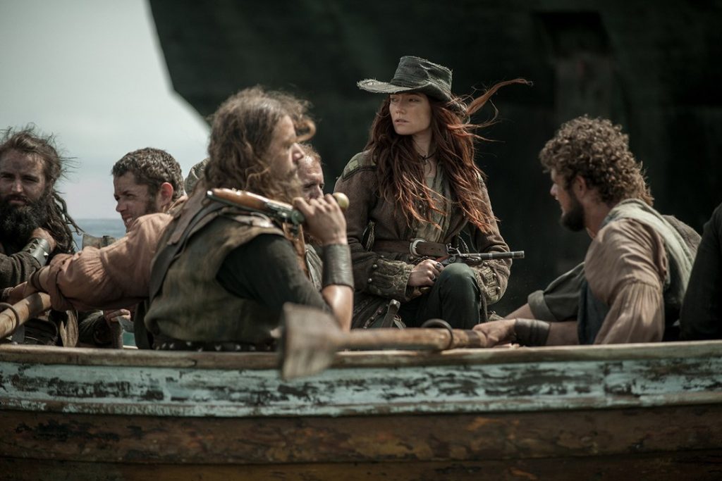 Back at sea, after raking Rogers’ ship with cannon fire, Blackbeard and Bonny lead the boarding party on the long-boats. Once aboard, something doesn’t feel right and with good reason. Rogers springs his trap and a bloody battle ensues. In the end, the unthinkable happens; Blackbeard is captured. Rackham and the crew aboard The Revenge watch helplessly from afar, and unfurl the white flag.