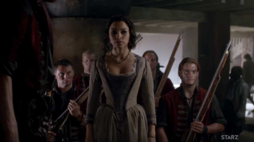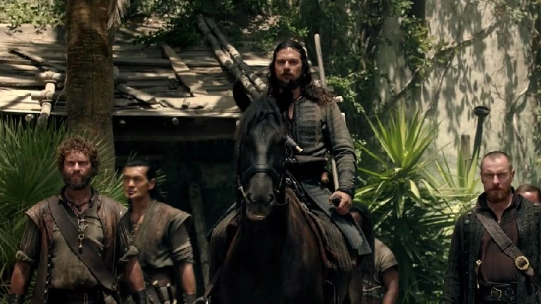 At Israel Hands’ hideaway, it seems that he and John Silver have formed a working relationship, with Silver no longer in manacles. But their respite is short-lived, as the redcoats suddenly arrive at their camp with search dogs. However, when they’re finally hunted down and cornered, Flint and his men turn up and save them. Afterwards, in a rare sweet moment, Silver is reunited with Madi.