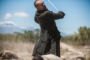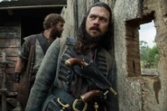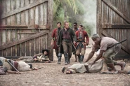 Meanwhile, Eleanor, Flint, Madi and their men are holed up at Mrs. Barlow’s abandoned house, when they spy a small band of Spanish scouts. As the Spaniards approach, an unshackled Flint and the men kill everyone, except for three Spanish soldiers who flee. Leaving two men behind, Flint and the others give chase.