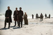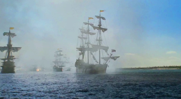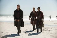 On the isolated beach, Eleanor Guthrie joins the argument between Jack Rackham and James Flint. Rackham wants no part in giving up his cache of Urca gold, but Eleanor insists on taking Flint anyway, along with Madi and a handful of men. Sometime later, Max shows up on the beach, searching for Eleanor. Jack isn’t so happy to see her, but when she informs him of the Spanish Armada, he allows her to join him aboard their ship.