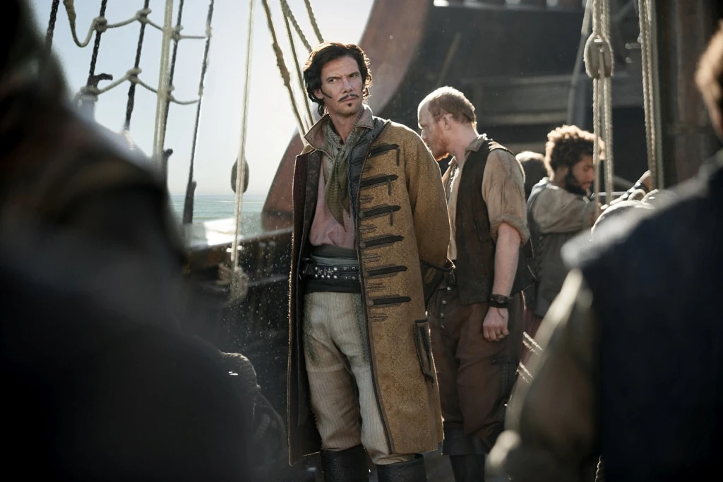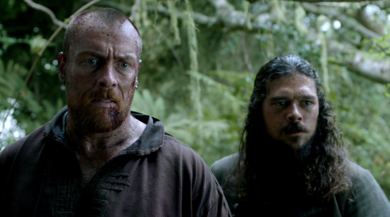 A series of flashbacks throughout the episode take us back to when James Flint and John Silver were more aligned than ever. A few weeks earlier on the Maroon Island, Silver was being schooled on how to properly sword fight, when Flint realises that he doesn’t really know Silver’s past; the boys’ home origin tale is clearly fabricated. Our past is the only insight into our base motivations. For as committed as they are to each other’s futures, it bothers Flint that Silver insists on keeping his past a complete mystery.